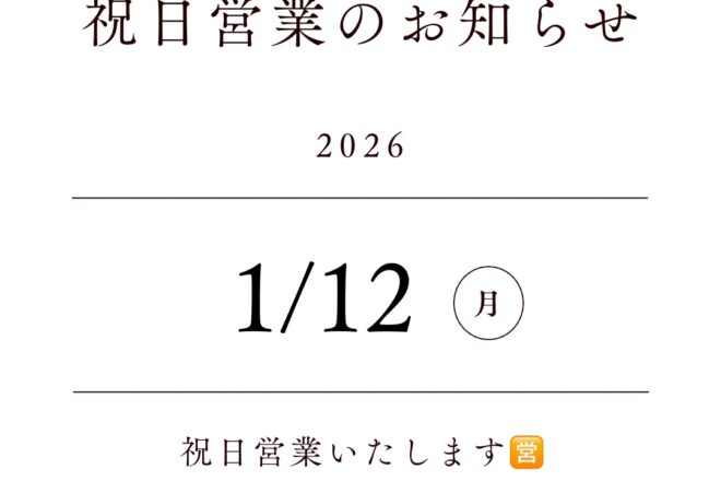 1/12(月祝)営業いたします🈺【こはく整体:四日市 鈴鹿 亀山】