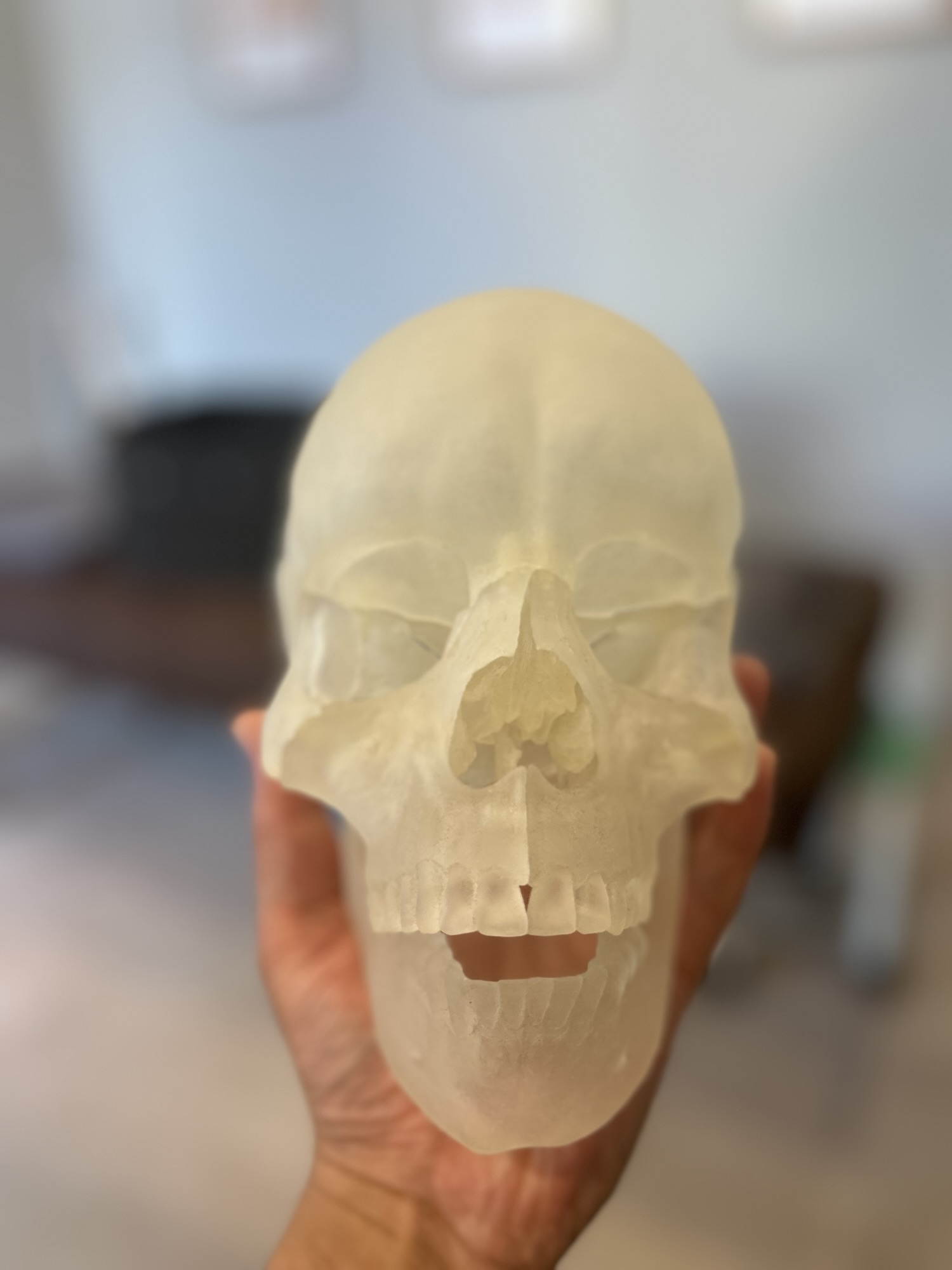 「頭蓋骨って一枚岩じゃないの?」と思われる方も多いですが、実は頭蓋骨は23個(15種類)の骨がパズルのように組み合わさってできています。それぞれの骨は「縫合(ほうごう)」と呼ばれるギザギザの継ぎ目でつながっており、わずかに動く余地があるのです。