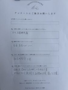 『大変気持ちがいい。 』患者さまの声🙌(アンケート) 臀部~下肢痛 肩こり 頭痛【こはく整体:四日市 鈴鹿 亀山 整体】
