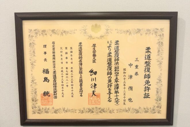 国家資格『柔道整復師』【こはく整体:四日市 鈴鹿 亀山 整体】