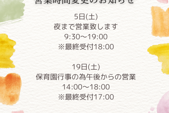 7月営業時間変更日のお知らせ【こはく整体:四日市 鈴鹿 亀山 整...