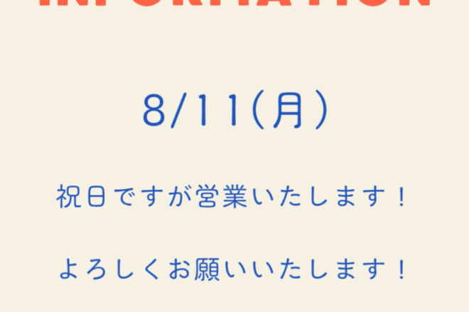 8/11(月)祝日営業致します!【こはく整体:四日市 鈴鹿 亀山...